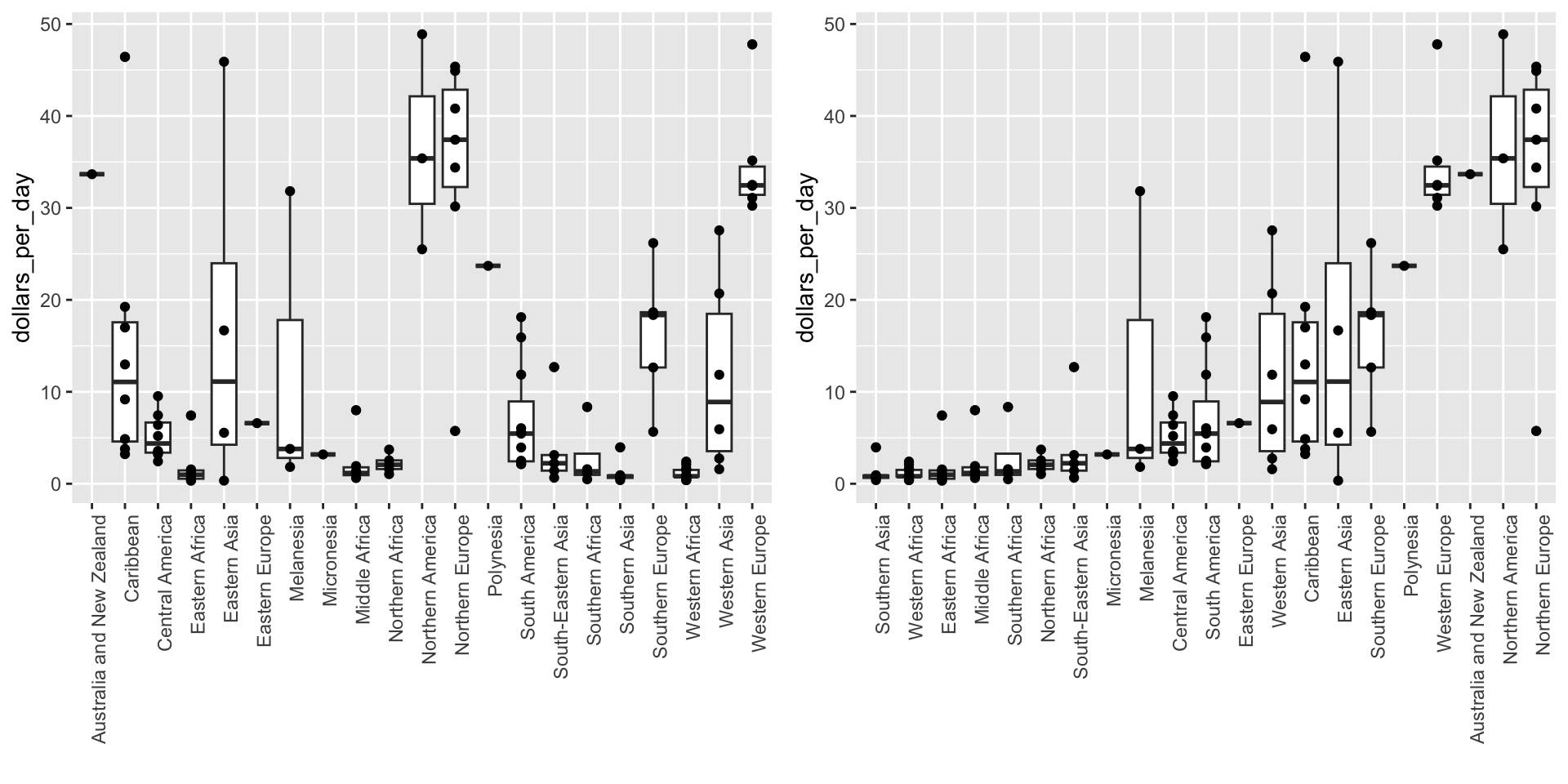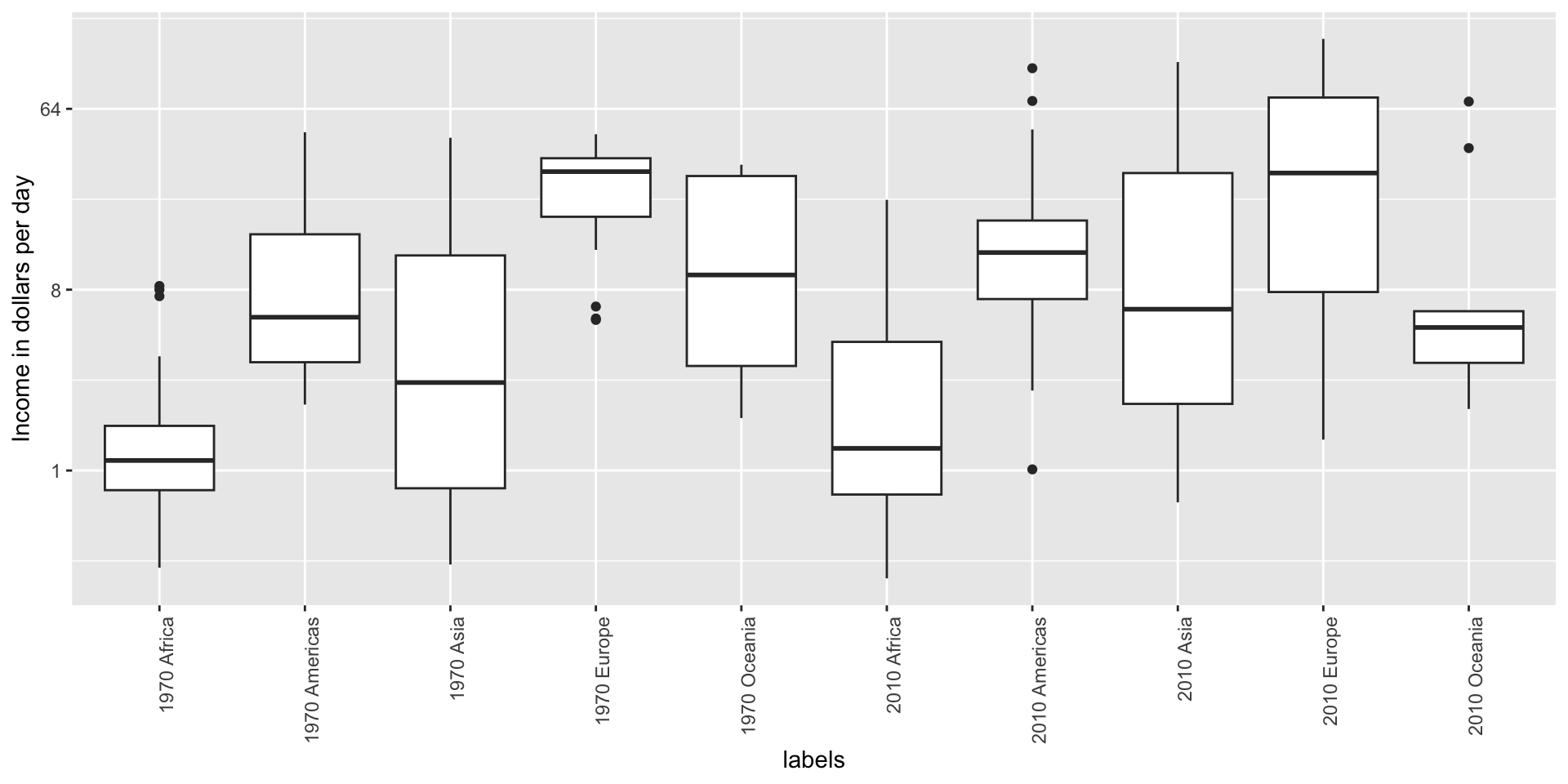 We have focused on displaying single quantities across categories. We now shift our attention to displaying data, with a focus on comparing groups.