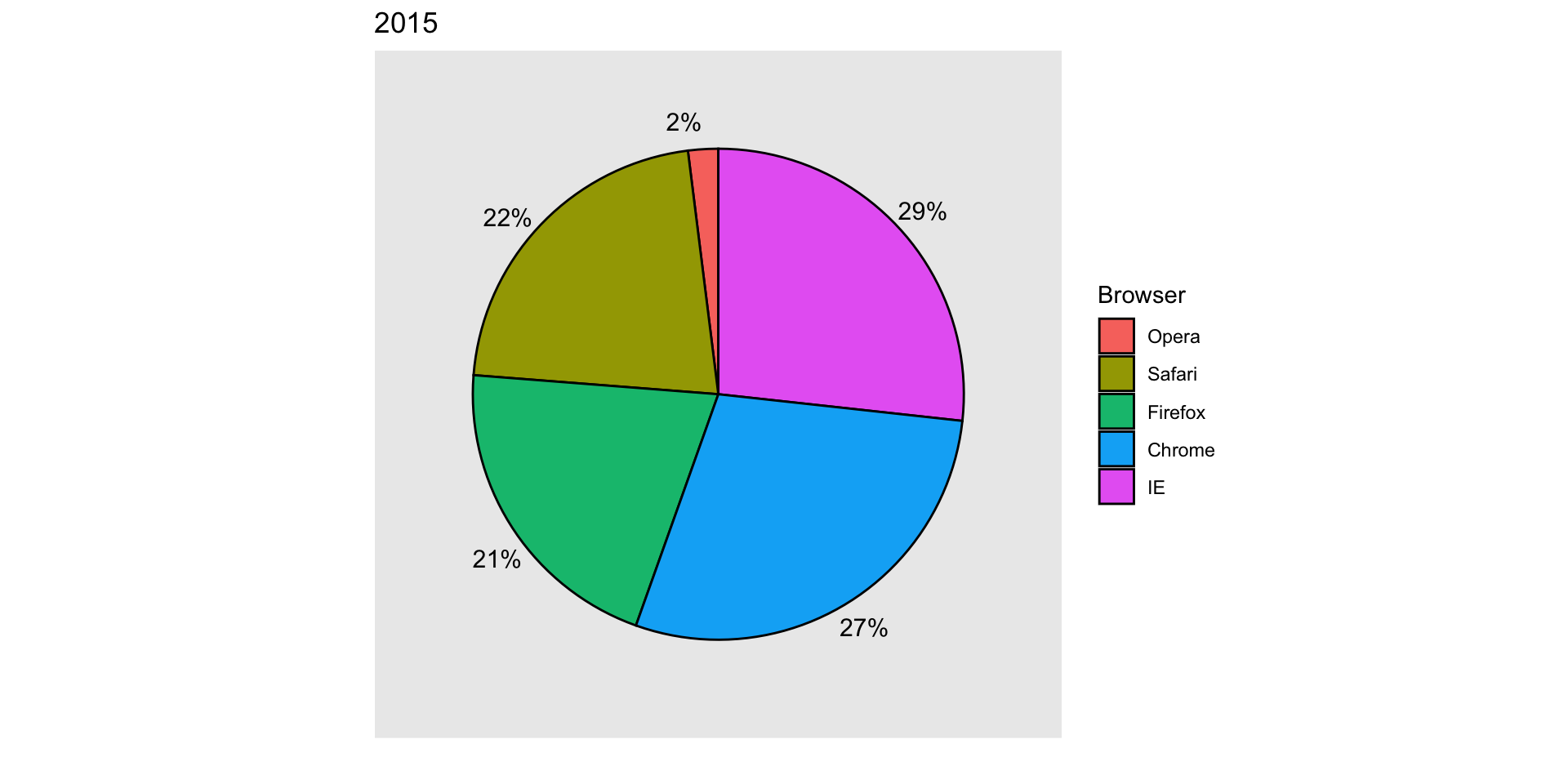 For each year, we are simply comparing five quantities – the five percentages for Opera, Safari, Firefox, IE, and Chrome.