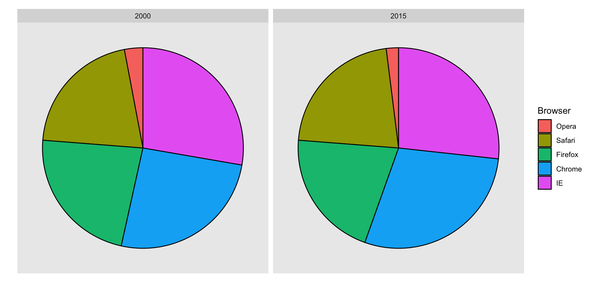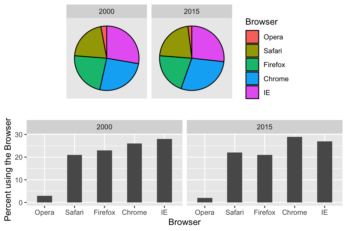 Suppose we want to report the results from two hypothetical polls regarding browser preference taken in 2000 and then 2015.