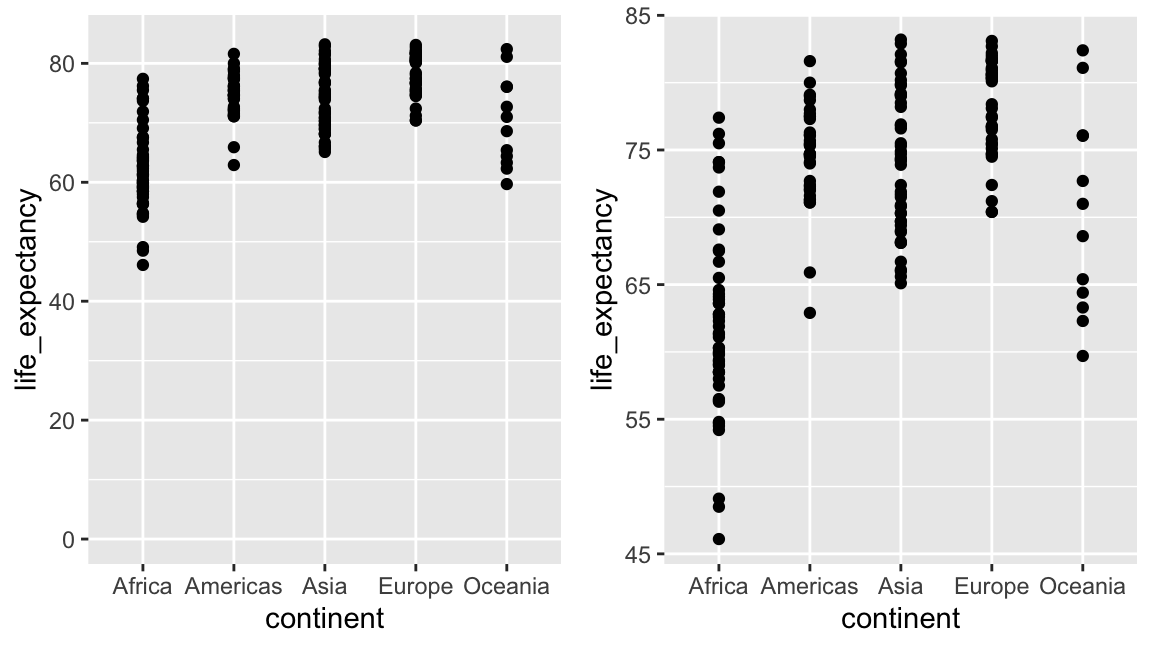 By avoiding 0, relatively small differences can be made to look much bigger than they actually are.
