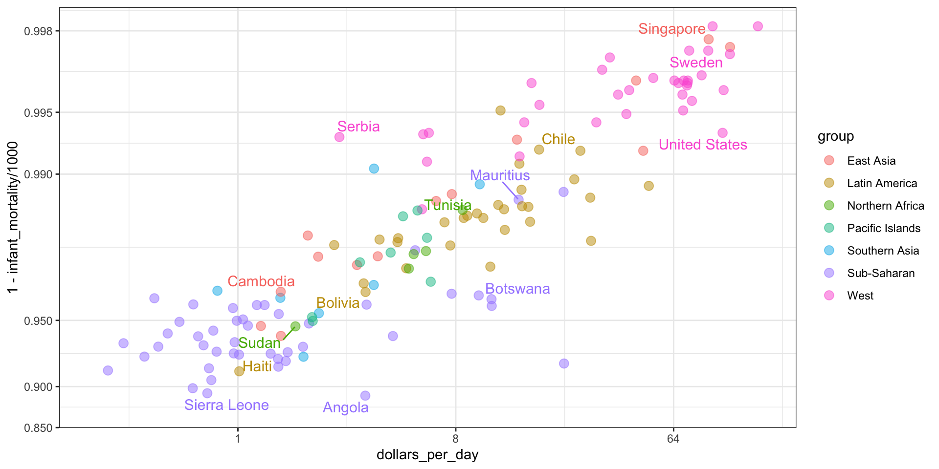 As motivation we will create plots that help us better understand trends in world health and economics.