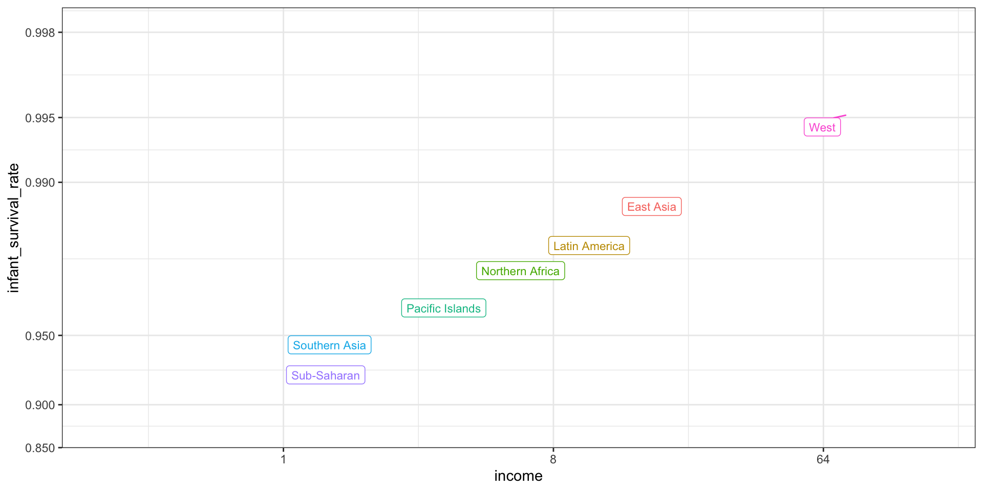 We define a data table with the label locations and then use a second mapping just for these labels: