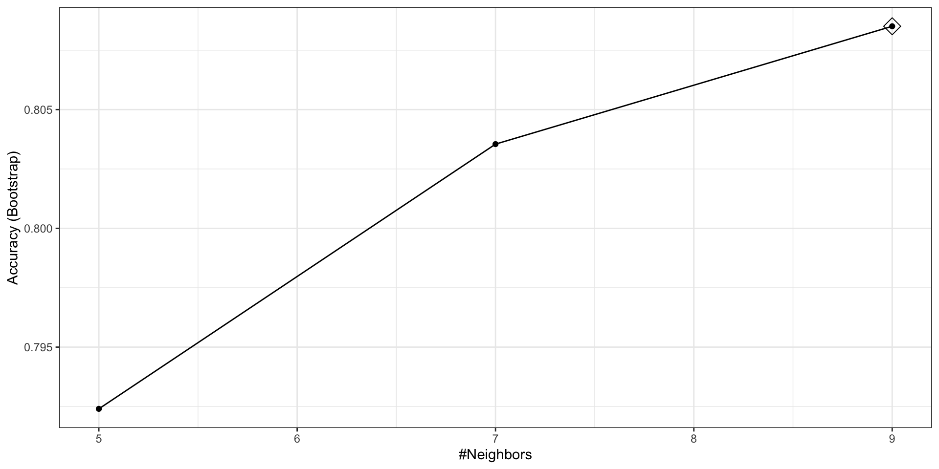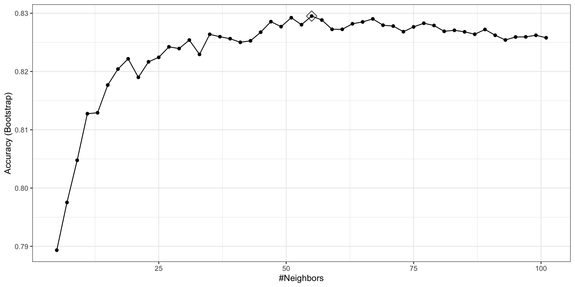 Since we are fitting \(49 \times 25 = 1225\) kNN models, running this code will take several seconds.