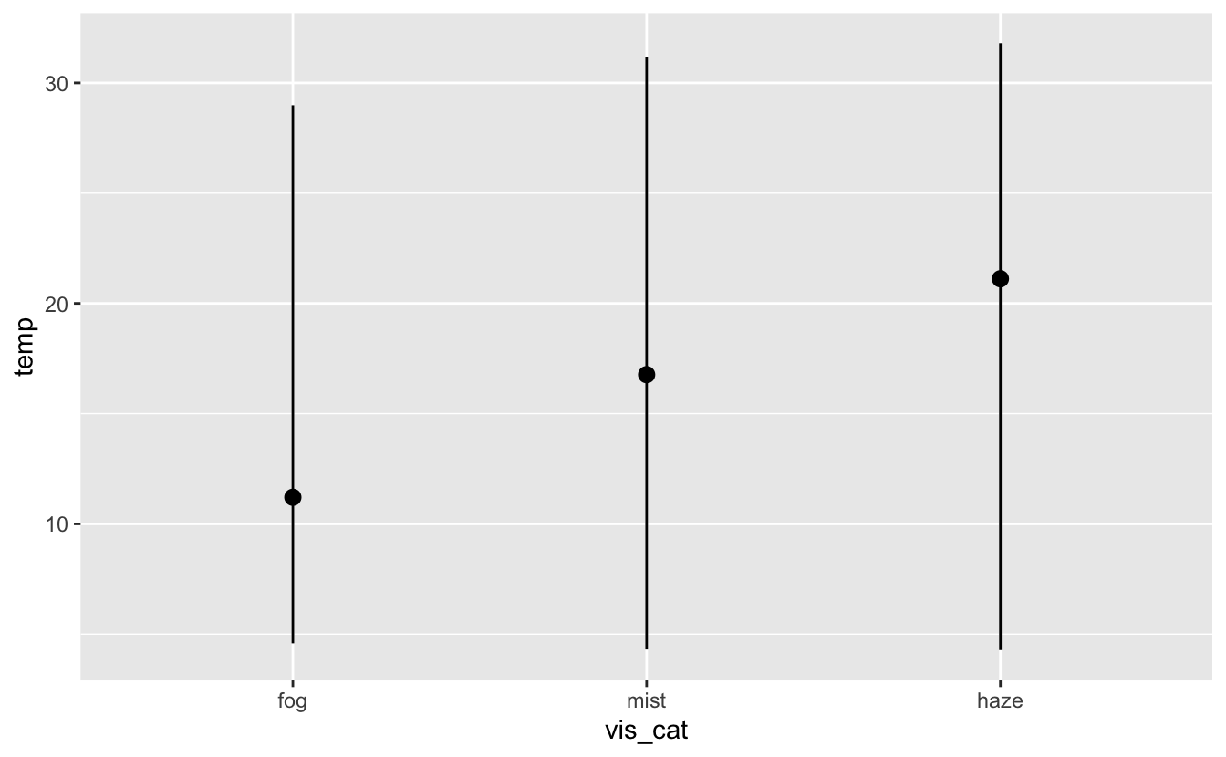 You might want to draw greater attention to the statistical transformation in your code. For example, you might use stat_summary(), which summarises the y values for each unique x value, to draw attention to the summary that you’re computing: